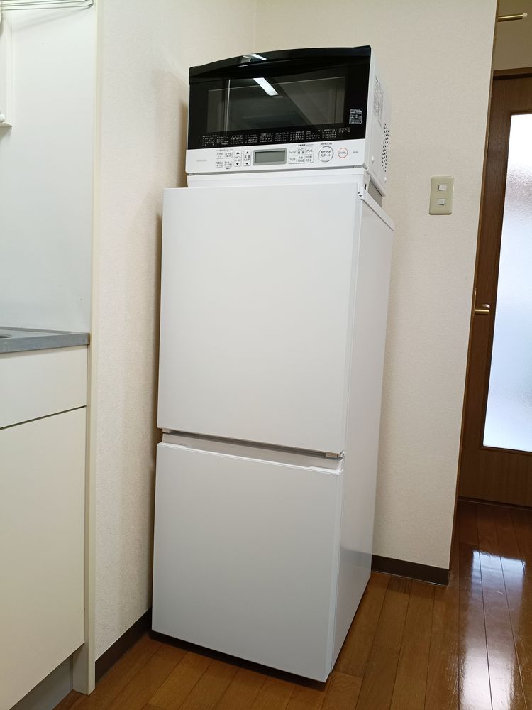 ウォシュレット・全箇所LED照明・カラーTVドアホン・室内物干・キッチン水栓・冷蔵庫・オーブンレンジ・洗濯機・エアコン・居室換気扇・物干竿・居室コンセントプレート 新設・キッチン横コンセント 増設